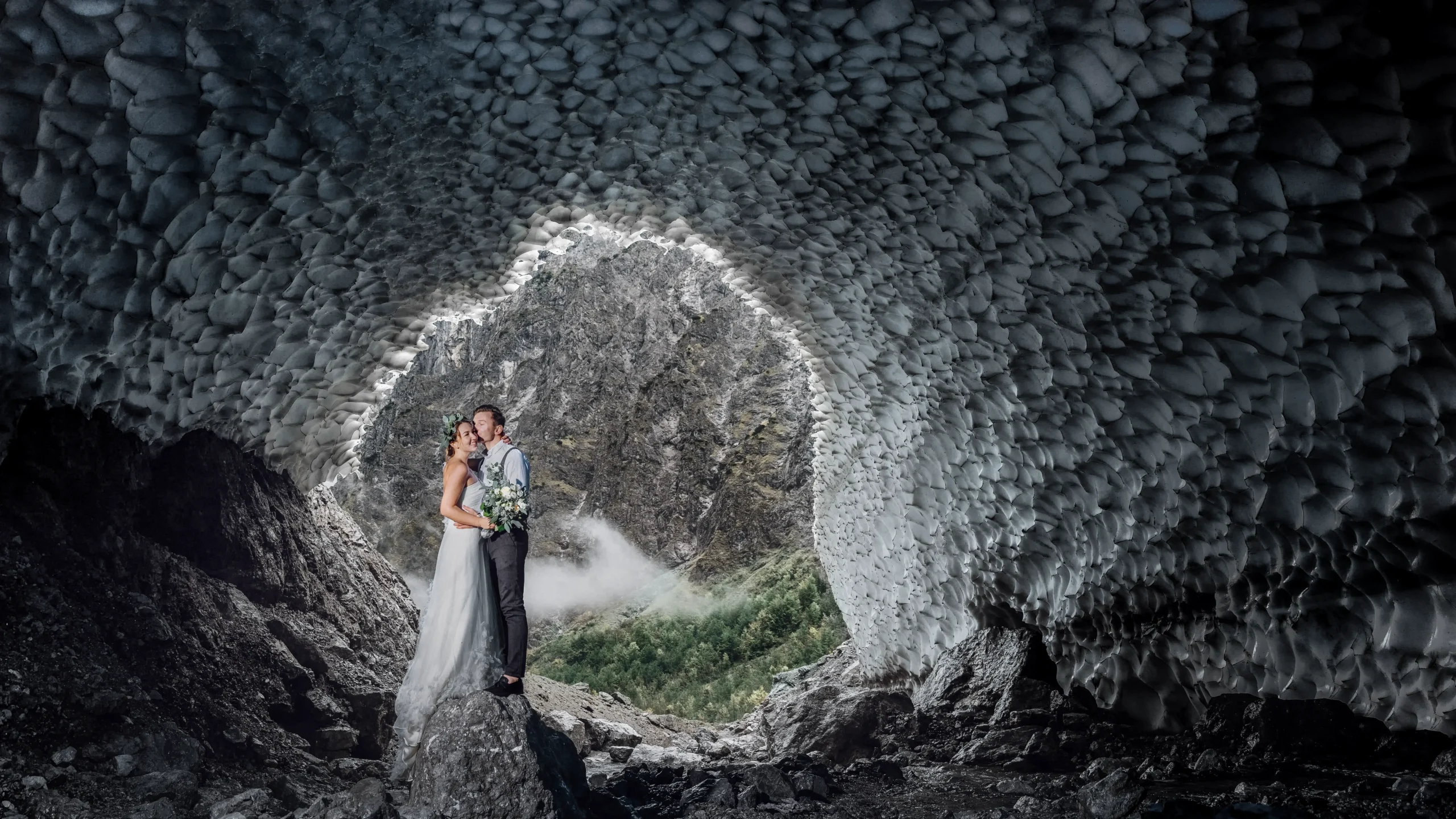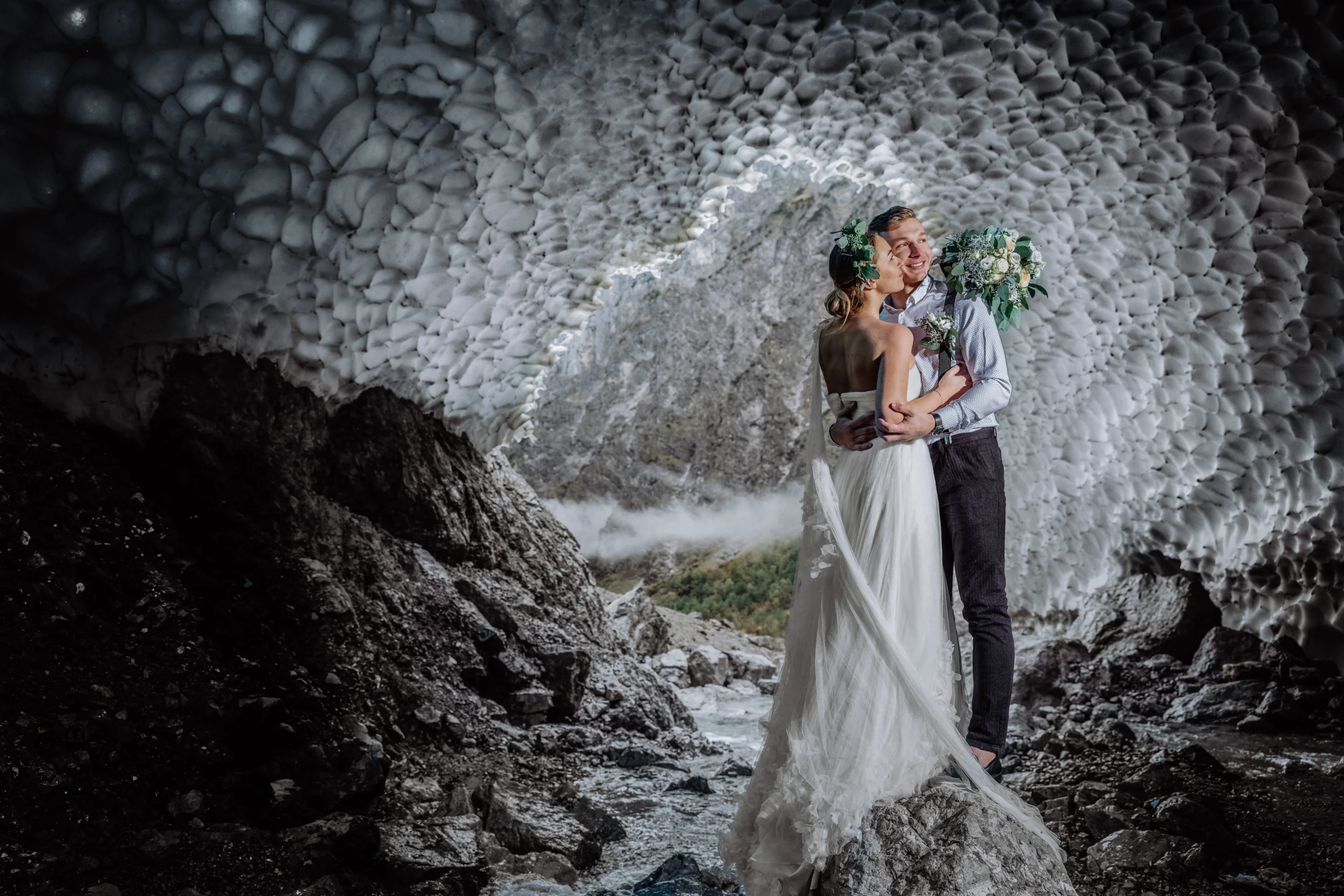 Unsere Reise führte uns zu einem Gletscher – genauer gesagt zur Eiskapelle am Königssee. Diese beeindruckende Location ist im Spätsommer gut erreichbar und bietet eine atemberaubende Kulisse für unvergessliche Fotos. Die Wanderung zur Eiskapelle war anspruchsvoll, doch alle Beteiligten schätzten den Aufwand, da die entstandenen Bilder für sich sprachen. Die Kombination aus der majestätischen Natur und der Eleganz des Brautpaares schuf faszinierende Kontraste und spektakuläre Aufnahmen.
